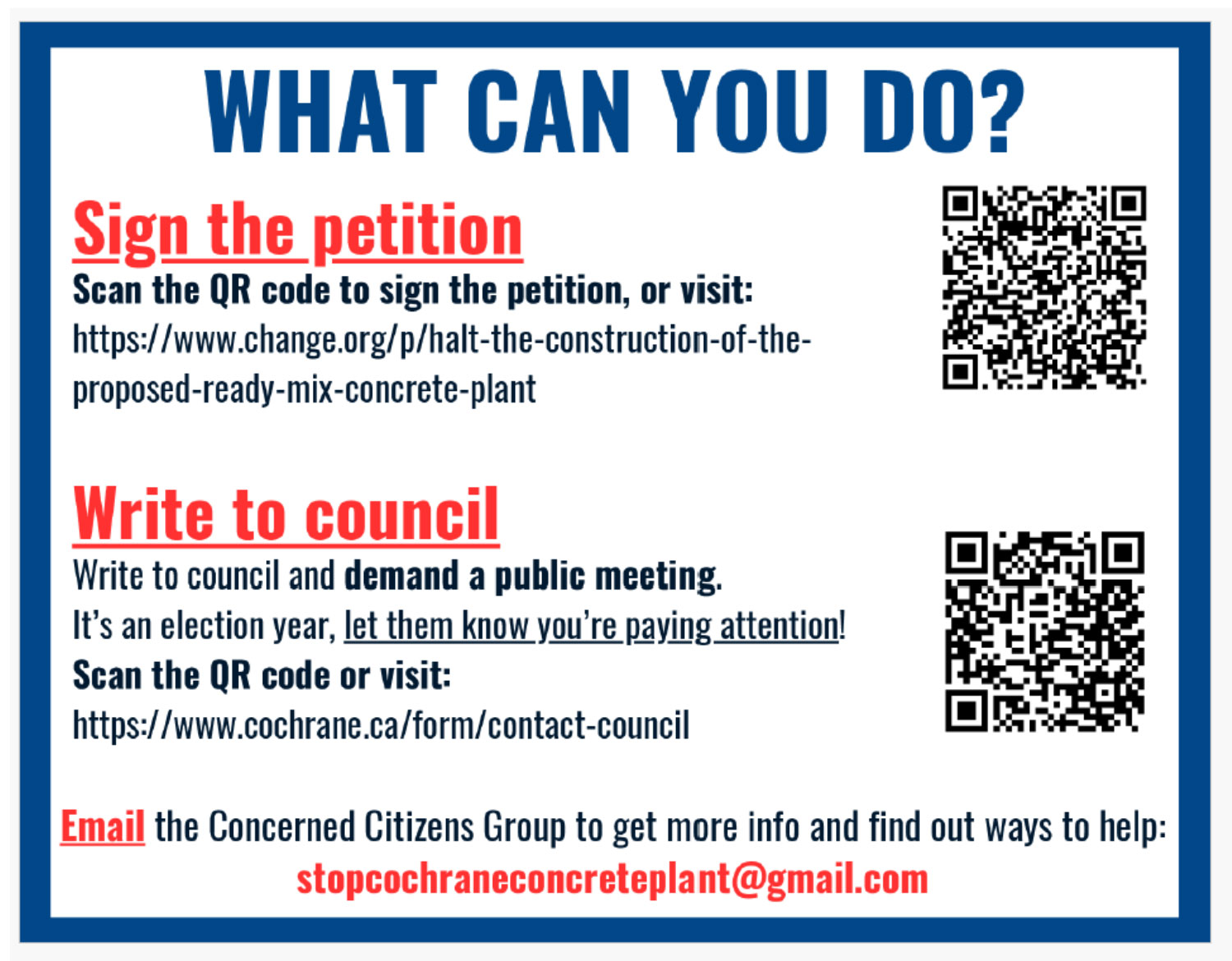 On April 17, 2024, the Cochrane Planning Commission approved a development permit allowing Heidelberg Materials to build a concrete batch plant at their existing gravel pit site. A community-led appeal was launched on May 16, 2024 with 99 signatures, the majority from Gleneagles residents. On May 27, 2024, Heidelberg requested that the Town cancel the permit, which ended the appeal at that time.